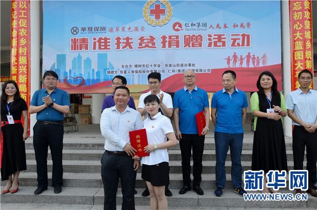 新華網南昌5月17日電(通訊員許國雄 張成)5月15日,仁和集團與合作伙伴華夏人壽保險股份有限公司(以下簡稱華夏人壽)精準扶貧捐贈儀式在江西樟樹市張家山街道辦事處舉行。宜春市紅十字會常務副會長陳愛紅、樟樹市委副書記尹志來、樟樹市政府副市長晏衛華等領導出席。